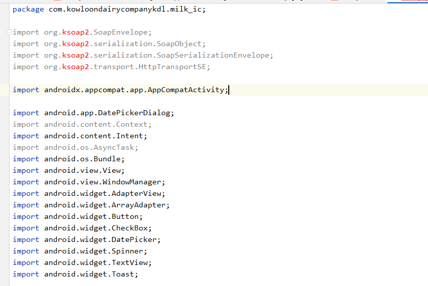 我试图使用Ksoap2文件3.6.4版本在android中导入.jar库。我已经成功地将jar文件实现到了android。但是,在模块app活动中,当我试图导入“org.ksoap2.soapEnKabe;”时,它得到并出错了,它显示了以下结果: