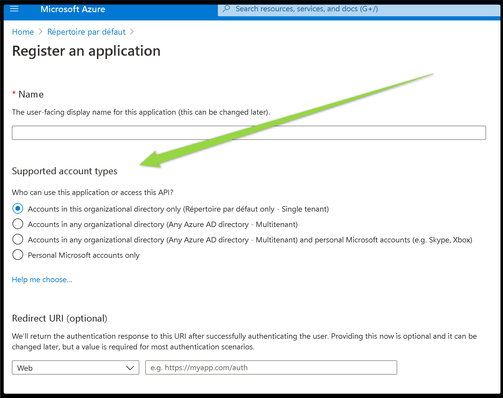 “受支持的帐户类型”只会影响Azure广告应用程序的使用。它不会影响您使用的身份验证流。如果您只想在您自己的Azure租户中使用它,只需选择这个组织目录中的第一个帐户(仅为)。参见详细信息这里。