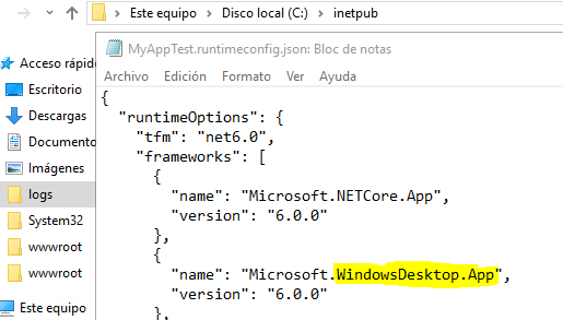 我得到这个错误是因为我的应用程序需要"Microsoft.WindowsDesktop.App",,我不知道为什么。检查文件: MyAppTest.runtimeconfig.json
