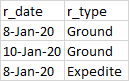 WITH cte_max AS (SELECT MAX(r_date) AS max_r_date FROM r_table where r_type ='Ground')