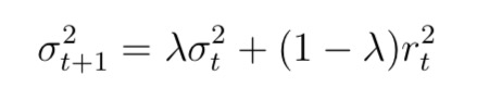 在每个PERMNO的第一天有一个初始的sigma_t值,我想用以下公式填充每个PERMNO的sigma_t列的其余部分,其中lambda = 0.94: