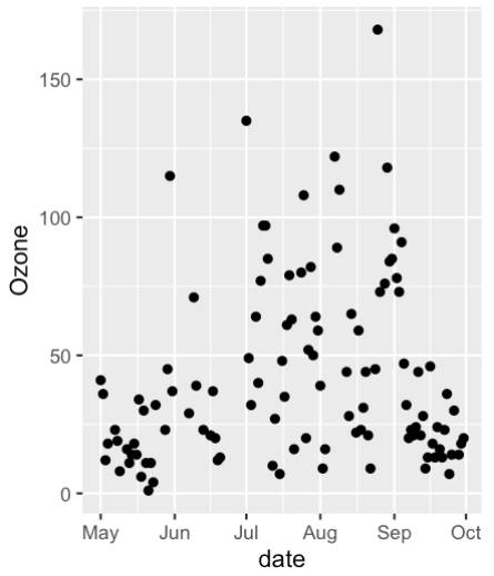 ggplot(aq, aes(x = date, y = Ozone)) +