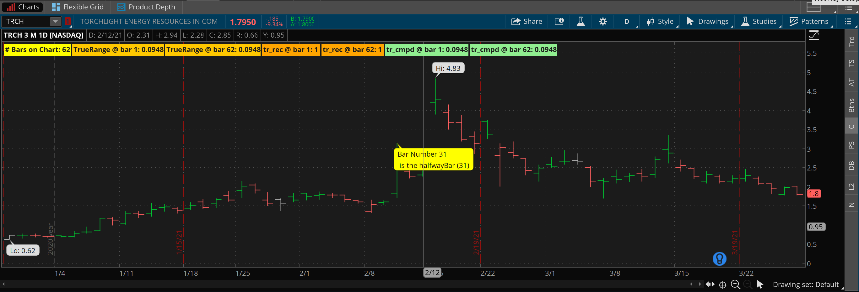 AddLabel(yes, "TrueRange @ bar 1: " + GetValue(TrueRange, numBars - 1), Color.ORANGE);