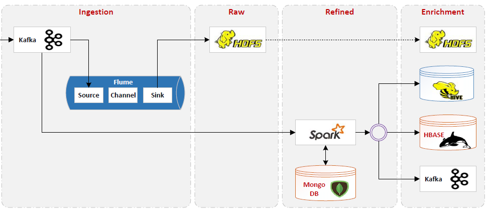 注:这里,我把数据从卡夫卡推到MongoDB,Hive和HBase