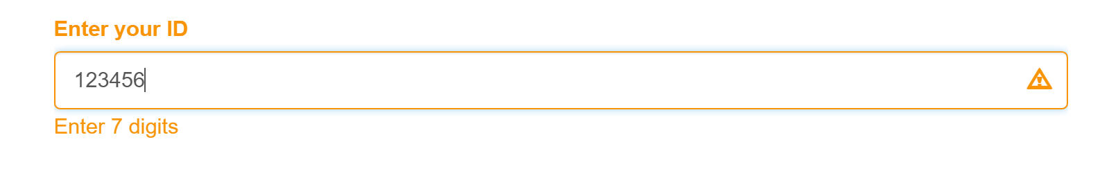 if (nchar(input$id) != 7 & !is.na(as.numeric(input$id))) { showFeedbackWarning( inputId = "id", text = "Enter 7 digits" ) } else { hideFeedback("id")}})