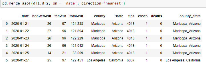 df1['new_deaths'] = df1.groupby(['county'])['deaths'].diff()创建合并的df: