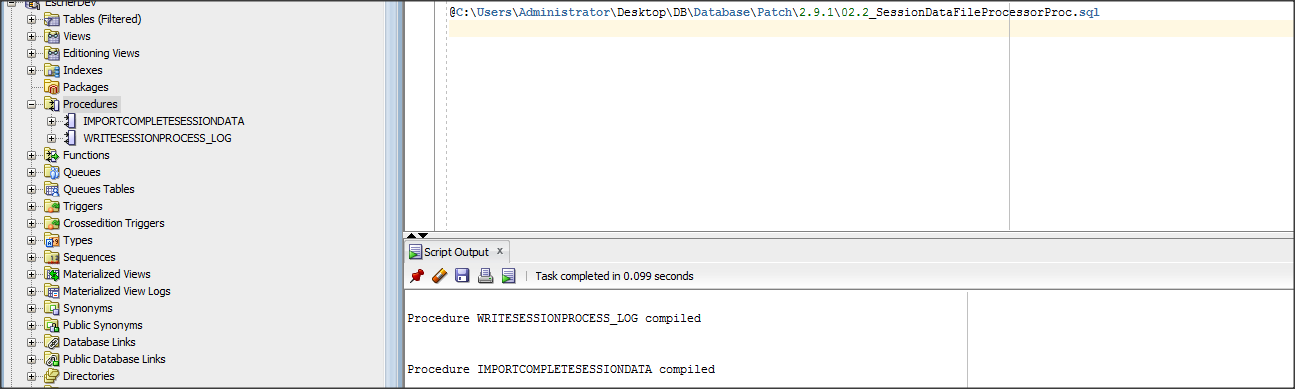 案例1:在SQLDeveloper工具中将整个内容从SQL文件复制到工作表中。然后按F5键。正确执行并创建2个存储过程。