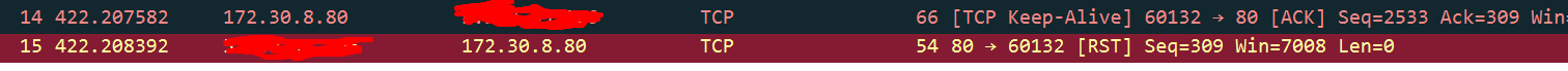 因此,TCP-保持活跃的数据包发送350秒后,从最后一个数据包,没有响应关闭建立的连接。所有tcp保持活动的数据包都可以通过tcp转储看到: