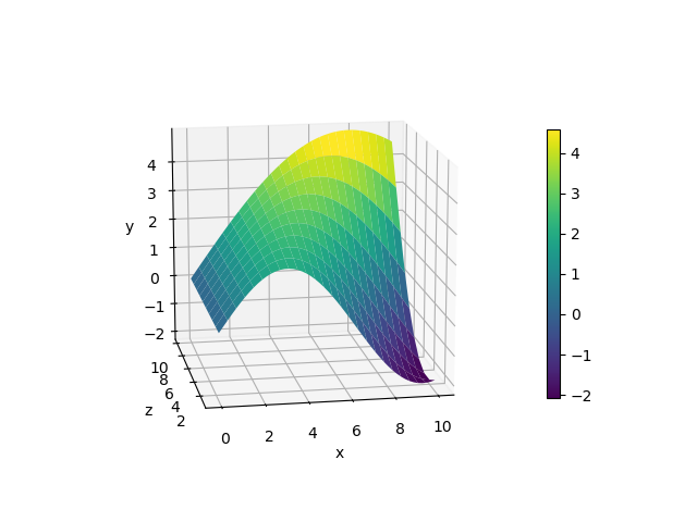 ax.set(xlabel='x', ylabel='z', zlabel='y')