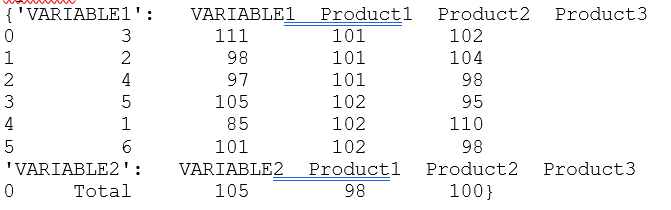 我的字典,mydict,包含了几个数据。每个数据包含不同数量的观察,但相同数量的特性。VARIABLEx既是字典中的键,也是数据帧中的第一个特性。VARIABLEx可以是数字字符,也可以是数字字符(varnum),并且可能存在“自然”排序/排序。