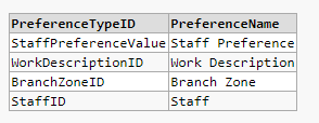 new SelectListItem{ Value="StaffID",Text="Staff"});因此,在您的例子中,_context.PreferenceType的数据库结果应该如下所示。