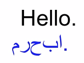 使用阿拉伯字符呈现TextClip。对于这种情况,我们可以使用مرحبا。