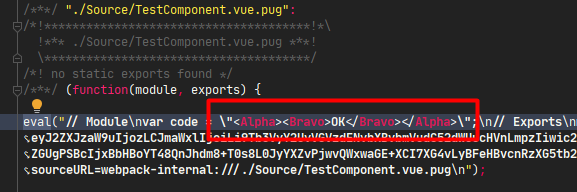 }在开发构建模式中,导出模板是正确的(为了可读性,我美化了它):