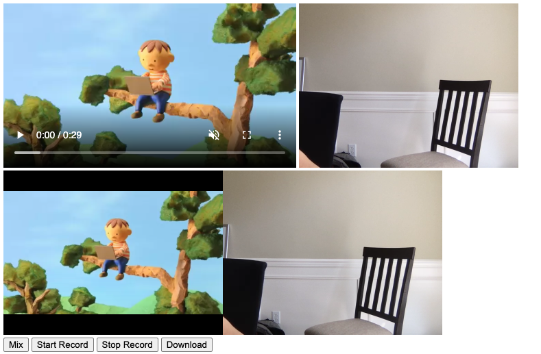 另一个想法是同时播放视频和录制的视频,并使用屏幕记录API来记录合并版本。(示例)。但这需要客户等待与初始记录相同的时间才能记录屏幕/选项卡。