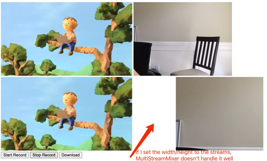 我看了一下MultiStreamMixer的源代码,发现问题是因为其简单的布局逻辑。因此,我把它的源代码作为参考,并建立了我的自定义混合器。见码页。