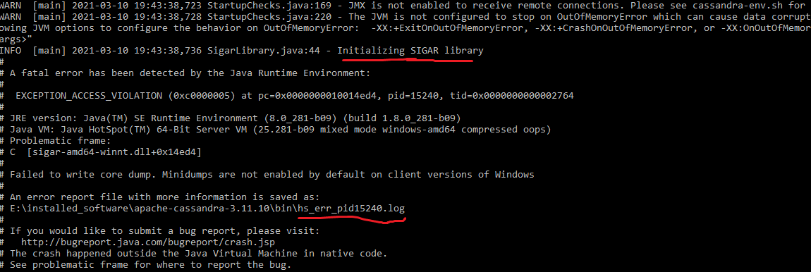 E:\installed_software\apache-cassandra-3.11.10\lib\sigar-bin将该文件的名称从“sigar- the 64-winnt.dll”更改为"sigar-amd64-winntt.dll".