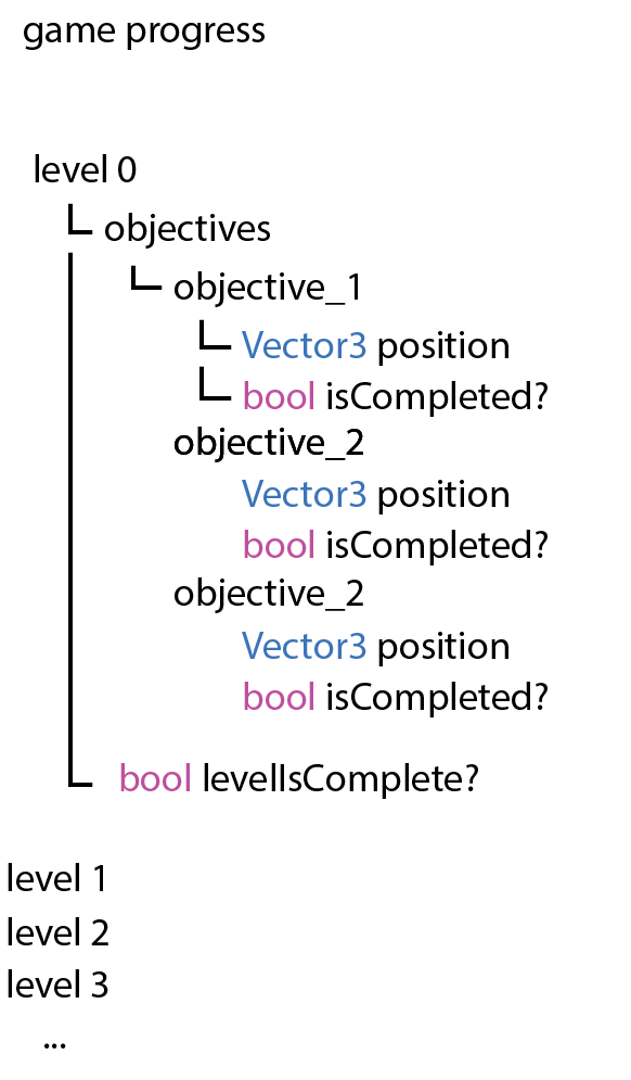 编辑**我已经画出了我想要获得的结构的类型。可以打包并写入保存文件的游戏进度数据: