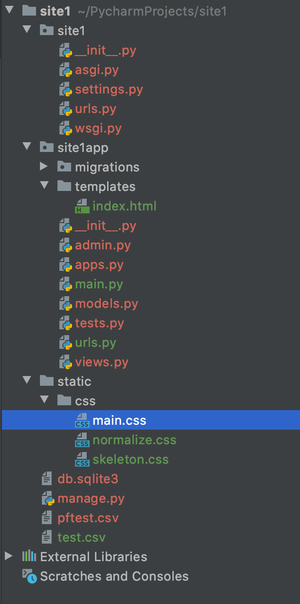 我不明白为什么我的main.css没有载入我的django项目。我正在使用骨架样板,并试图改变背景颜色,但什么都没有发生。这很奇怪,因为当我运行python3 manage.py runserver时,它将计算我在项目开始时输入的第一个原始main.css值,但是当我更改我的main.css值时,网页只显示我的原始值。