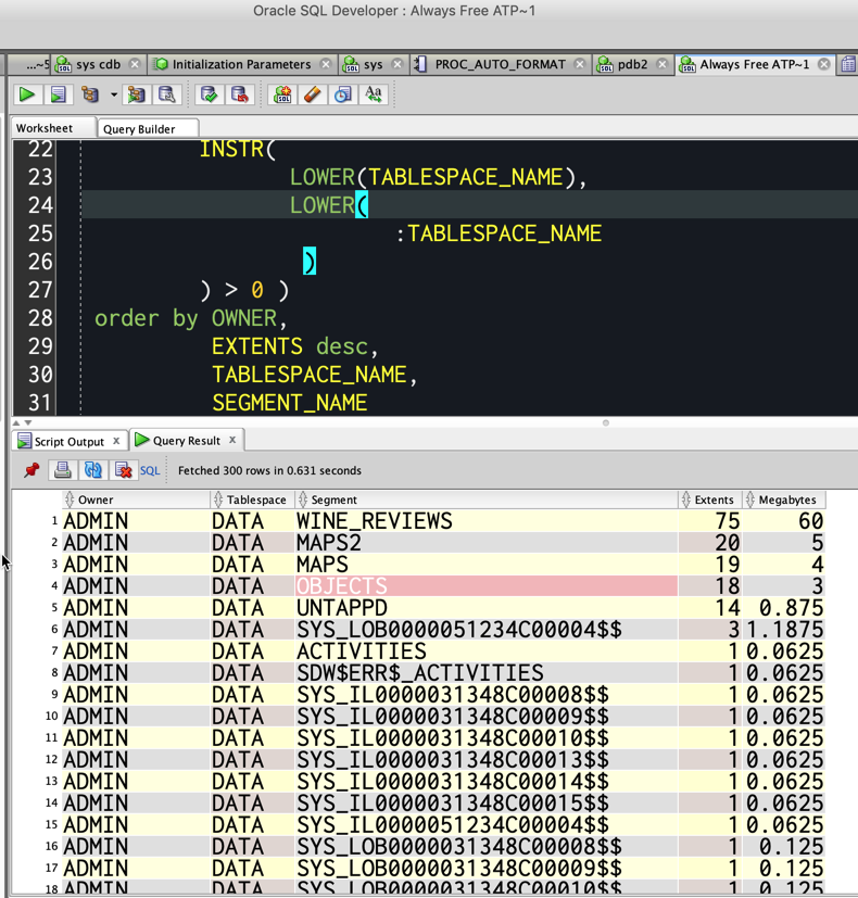 SIZE_MB DESC"OWNER", "SIZE_MB",