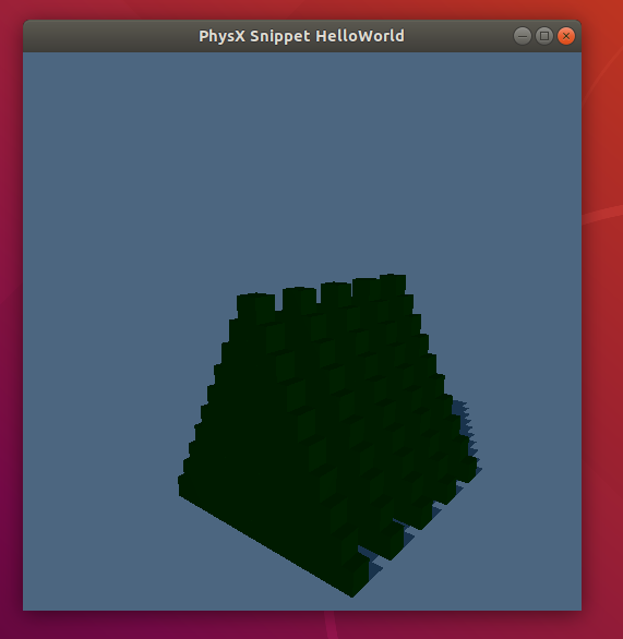 最后,将cd转换为PhysX-4.1/physx/bin/linux.clang/debug,您应该能够运行./SnippetHelloWorld_64和其他演示: