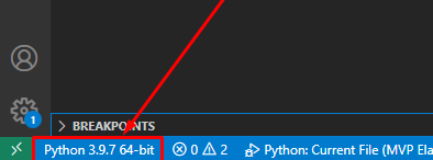 您可能有许多python路径,VS代码使用错误的路径。选择正确的解释器路径,只需单击此处: