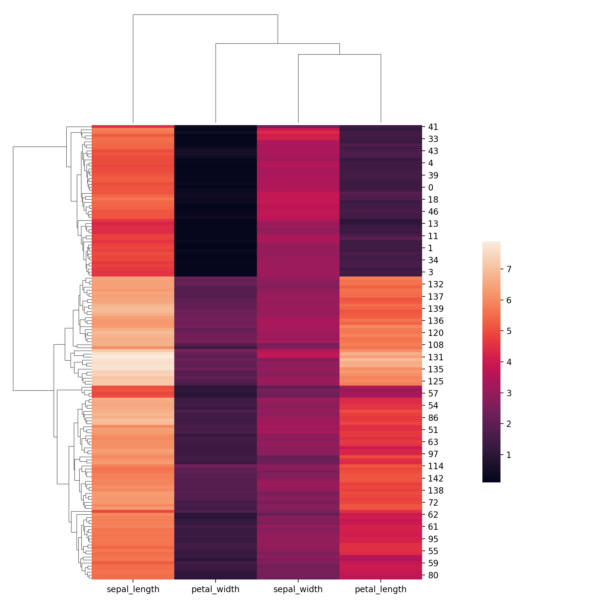 g = sns.clustermap(iris)