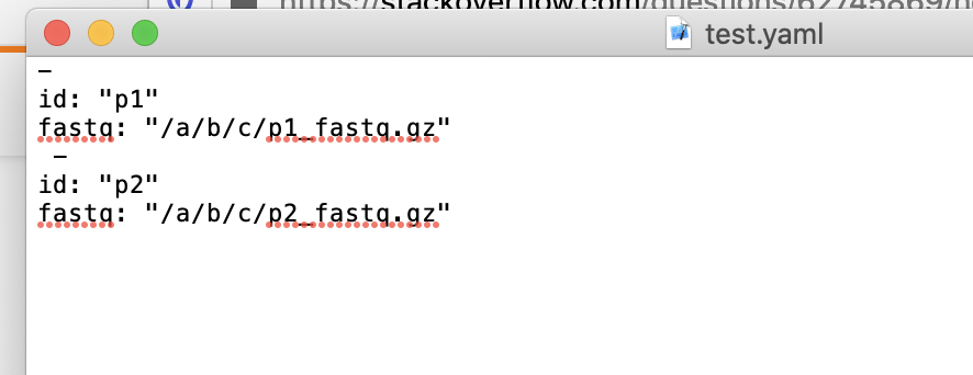 fastq: "/a/b/c/p2_fastq.gz"我尝试过R中的yaml包,但是它写成