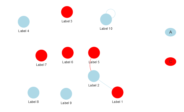 visnw 但是,上面的代码给了我这个错误,因为C组必须有红色。另外,由于节点1、3、5、6、7属于组"C“而不是"A”,所以组被切换。后一个问题在我省略OR排表()时没有变化,但是图例中的"C“级别位于"A”级别的顶部和下面,这并不好。