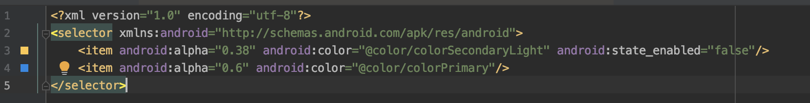 <item android:alpha="0.38" android:color="@color/colorSecondaryLight" android:state_enabled="false"/>