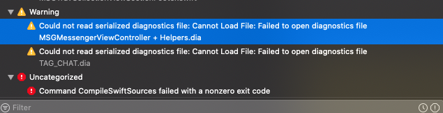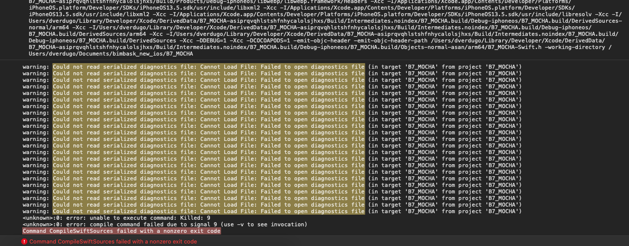 /Users/dverdugo/Library/Developer/Xcode/DerivedData/B7_MOCHA-asiprqvqhlstshfnhycalolsjhxs/Build/Intermediates.noindex/B7_MOCHA.build/Debug-iphoneos/B7_MOCHA.build/Objects-normal-asan/arm64/TAG_CHAT.dia:1:1:无法读取序列化诊断文件:无法加载文件:未能打开诊断文件