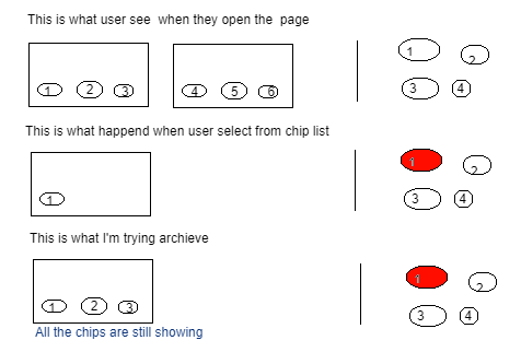 现在,当从芯片列表中选择特定的芯片时,除了用户选择的一个芯片外,卡内的所有芯片都是消失/过滤的。