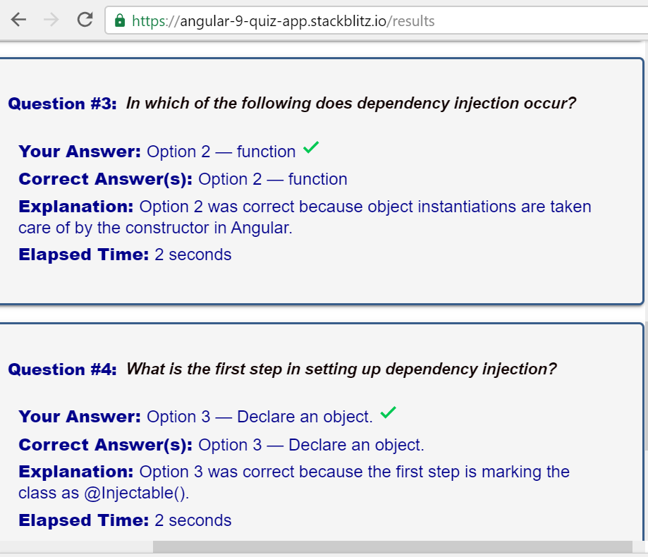 对于在dependency injection-Quiz.Component.html中显示的无问题:-