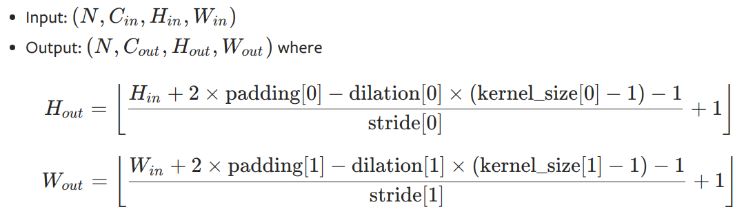 我正在研究PyTorch中的模型实现。第一层为卷积层,滤波器大小为7,步长为2,pad = 3。网络的标准输入尺寸为224x224x3。基于这些数字,输出维数为(224 +3*2-7)/2+ 1,它不是整数。原始实现是否包含非整数维?我看到网络在FC层之前有自适应池,所以变量输入维度不是问题(我通过改变输入大小来测试这一点)。我是不是做错了什么,或者为什么作者在设计ResNet时选择了一个非整数维?