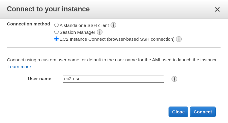 如果我使用EC2实例连接到实例,那么它的工作原理如下所示:
