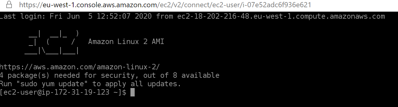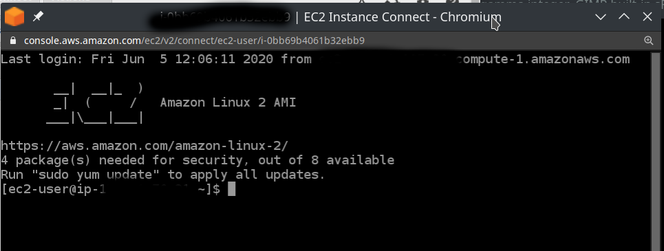 相反, EC2实例连接实际上建立了到实例的正常SSH连接。web浏览器使用到AWS的Guacamole连接,然后AWS使用正常的SSH (通过额外的攻击允许临时键盘)运行这些命令。因此,它看起来像是运行在shell上的正常连接。