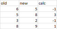 , (new - old) as calc