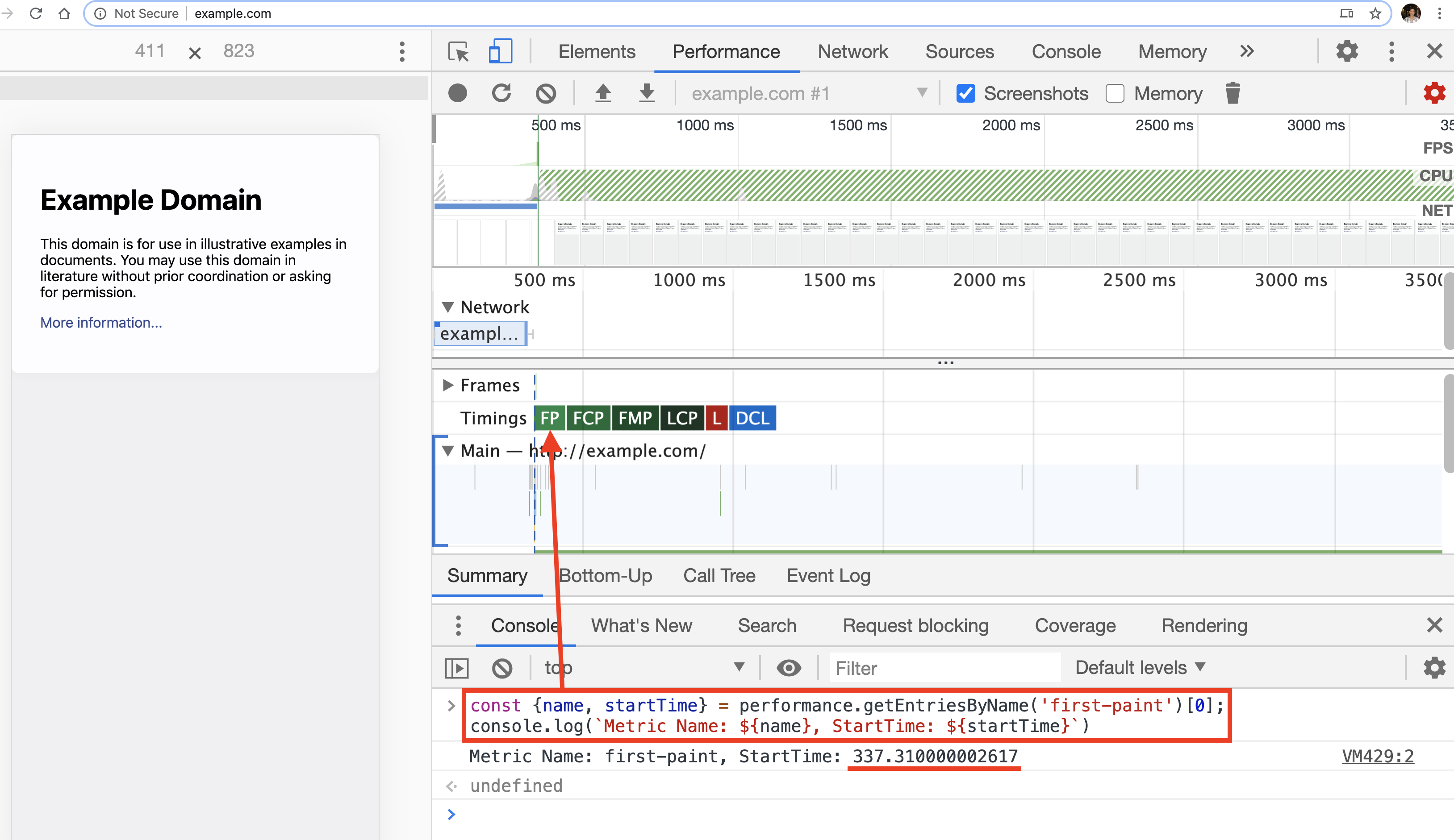 const {name,startTime} = performance.getEntriesByName('first-paint');