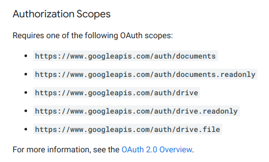 请使用OAuth2和服务帐户检索的访问令牌。这样,就可以使用Docs。我认为这是谷歌推荐的方式。