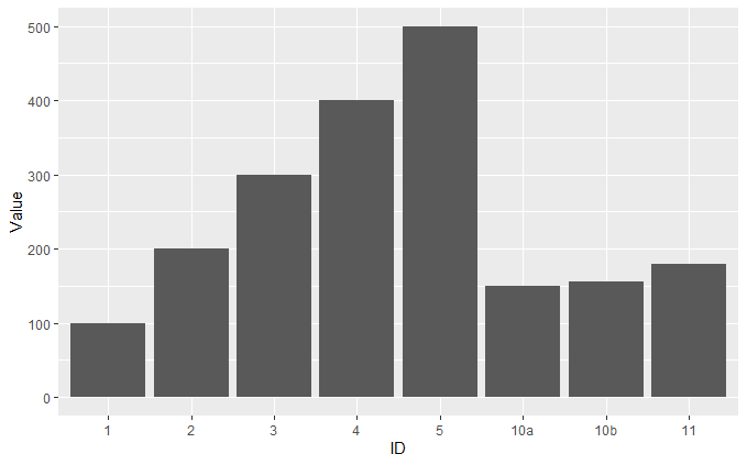 df <- data.frame(ID=(c("1", "2", "3", "4", "5", "10a", "10b", "11")),