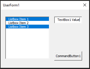 就我的示例而言,Private Sub UserForm_Initialize()事件填充了ListBox --当涉及到您的代码时,您可以忽略这一点,但是我觉得有必要包括如何填充ListBox Items和使用什么值。