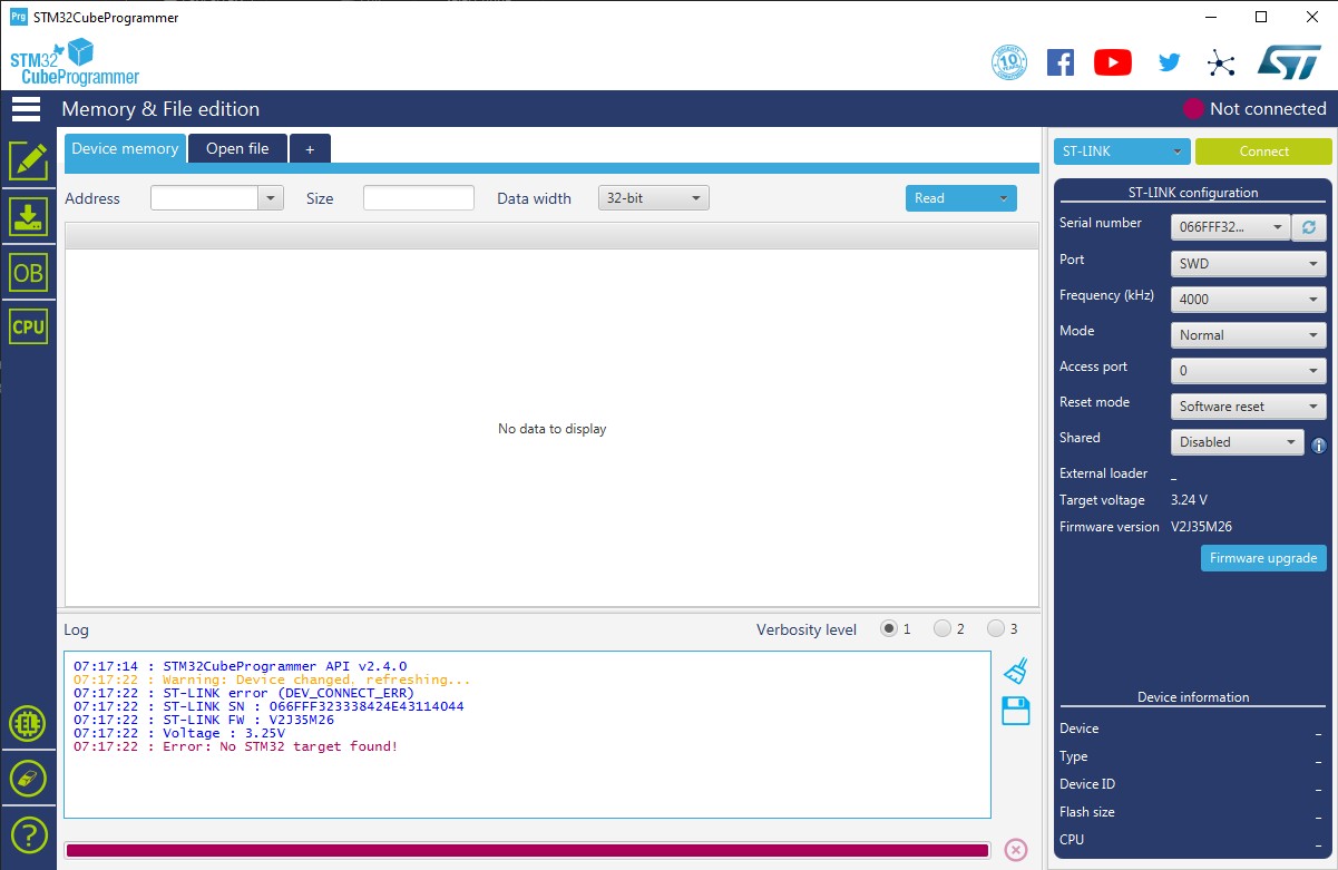 2-更新我的ST-链接固件,它是运行和更新它从STM32CubeProgrammer的照片.