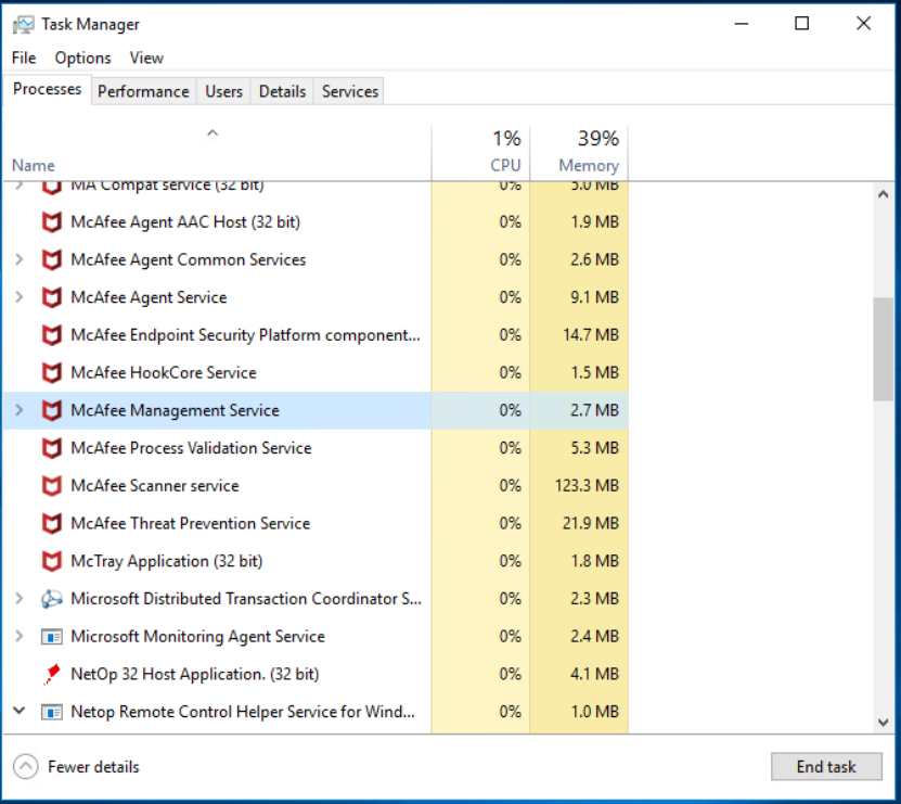 问:如何用powershell脚本获取后台进程的进程名?如何找出任务管理器的后台进程中是否可以找到某个应用程序的名称?例如,在下面的图像中,我需要检查这个项目是否在后台进程"NetOp 32主机应用程序“中。(32位)