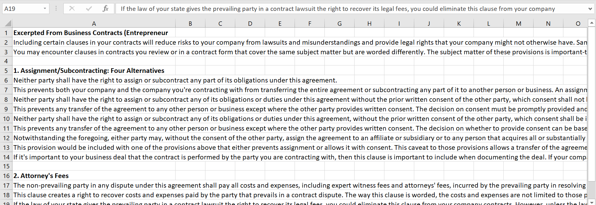 我有文字(.docx)格式的合同条款,需要经常复制并粘贴到Excel (.xlsx)中,然后发送给第三方。这些子句经常被更新,因此总是需要复制和粘贴这些子句。我只需要复制和粘贴所有的段落和图片后,的内容页。下面是条款文件的一个示例。