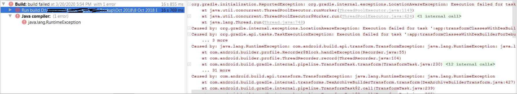 > com.android.build.api.transform.TransformException: java.lang.RuntimeException: java.lang.RuntimeException