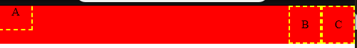 我希望A是左对齐,B和C是右对齐。因为我不希望A的框架在到达B之前生长,所以我设置了A的display: inline。这几乎是可行的,但出于某种原因,A是不正确的:它显示垂直不对齐。这似乎源自于它是唯一不是flex容器的直接子元素的p元素。但为什么会这样呢?