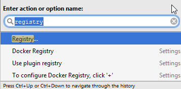 按SHIFT+CTRL+A (Win/*nix)或Command+SHIFT+A (Mac)打开弹出窗口,键入registry。