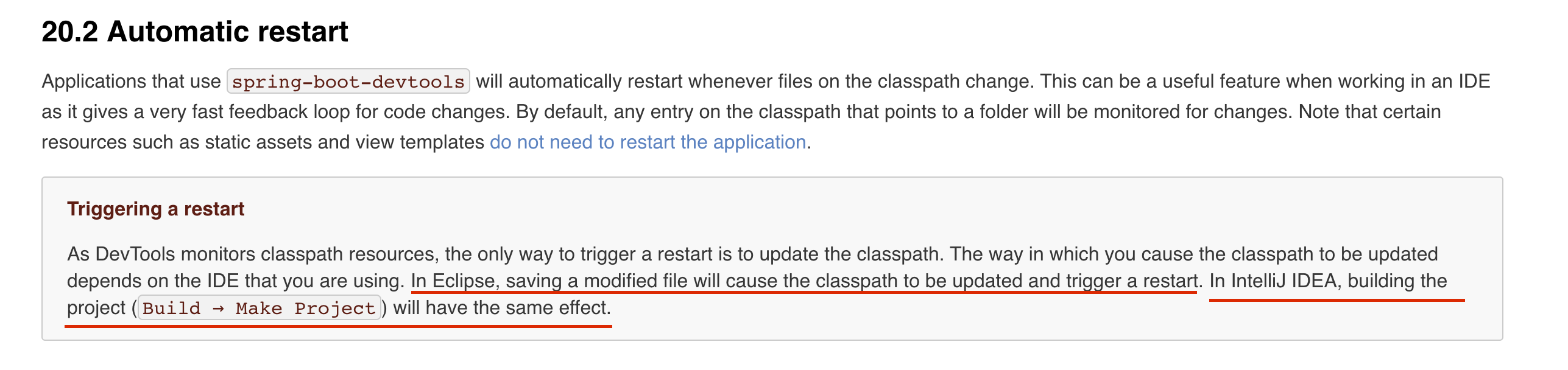 https://docs.spring.io/spring-boot/docs/current/reference/htmlsingle/#using-boot-devtools-restart