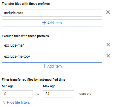 在上面,您可以看到如何过滤文件以通过前缀传输,还可以看到仅传输在过去24小时内更改的文件。