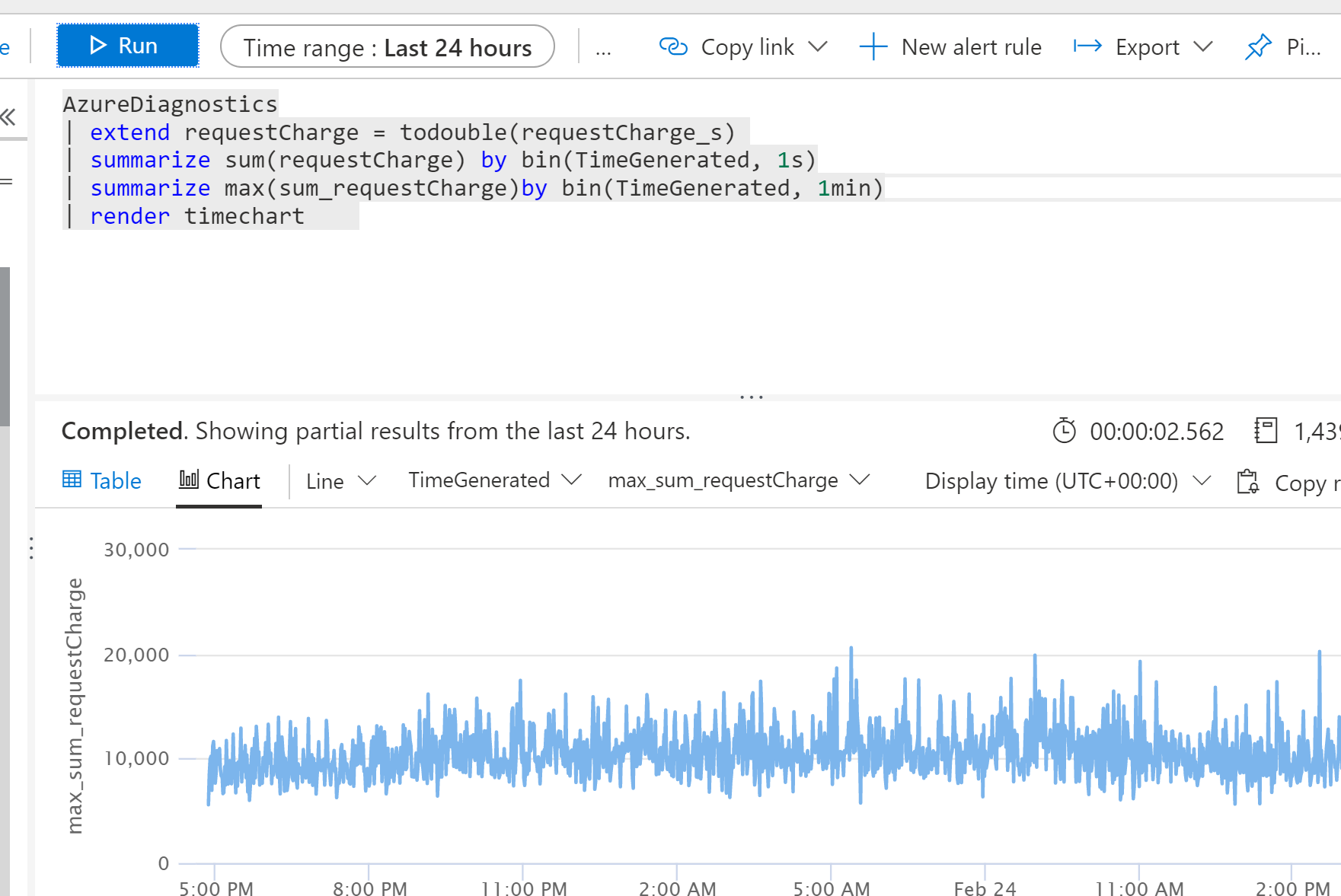 首先,我在诊断中使用请求更改来计算。结果表明,最大RU为10k/s。