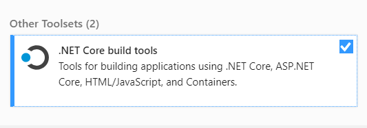 b)下载用于VS2019的构建工具的最新版本。您可以在Visual 2019工具下从此链接下载它。如果您已经下载了它,请更新到vs安装程序中的最新版本。另外,确保已经安装了工作负载Net Core build tools。在此之后,您可以使用它构建网络核心项目。